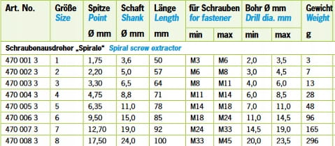 RENNSTEIG specjalizuje się w produkcji wykrętaków do urwanych śrub.