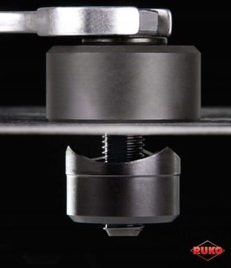 Metryczne śruby pociągowe w dziurkownikach RUKO posiadają najwyższą jakość i dzięki temu zaprojektowane są na ekstremalne obciążenia. W przypadku uszkodzenia można je zawsze na krótko zastąpić zwykłymi śrubami drobnozwojowymi znajdującymi się w handlu.