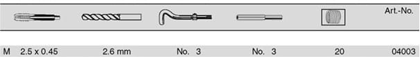Zestaw do naprawy gwintów M2,5 x0,45 1,5D w kasecie z tworzywa sztucznego 04003