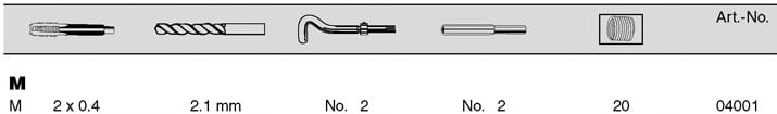 EAN 4022835040019 Zestaw do naprawy gwintów M2 x0,4 1,5D w kasecie z tworzywa sztucznego 04001 V-coil Volkel