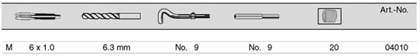 EAN 4022835040101 Zestaw do naprawy gwintów M6 x1,0 1,5D w kasecie z tworzywa sztucznego 04010 V-coil Volkel