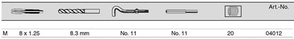 EAN 4022835040125 Zestaw do naprawy gwintów M8 x1,25 1,5D w kasecie z tworzywa sztucznego 04012 V-Coil