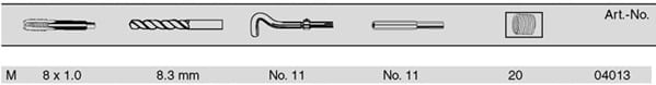 Zestaw do naprawy gwintów M8 x1 1,5D w kasecie z tworzywa sztucznego 04013