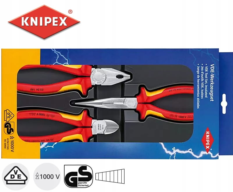 EAN 4003773012412 Zestaw szczypiec 00 20 12 VDE 1000V szczypce uniwersalne, boczne, wydłużone 002012 Knipex