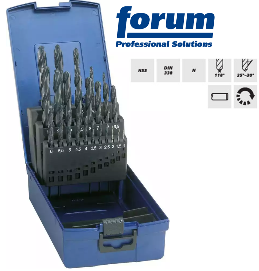 Zestaw wierteł 1,0-10,0x0,5mm HSS-R 19szt. w kasecie z tworzywa sztucznego, "DIN-338 typ N" 8508682