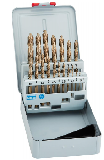 Zestaw 24 wierteł krętych DIN 338 typ VA HSSE-Co5 szlifowanych, w kasecie przemysłowej