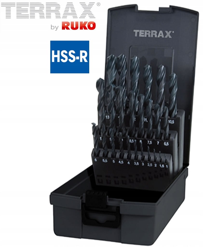EAN 4007140367693 Zestaw wierteł 1,0-13,0x0,5mm HSS-R 25szt. w kasecie z tworzywa sztucznego ABS DIN 338 A205211RO Ruko Terrax