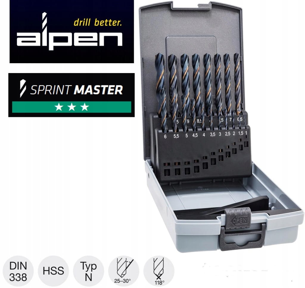 - najnowszej generacji wiertła HSS Sprint MASTER Alpen wykonane są zgodnie z normą DIN338,