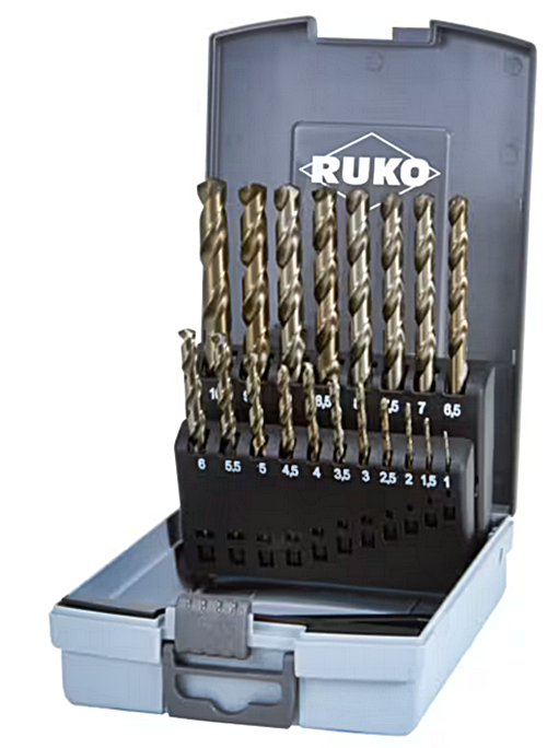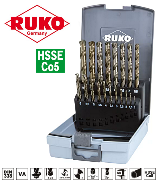 EAN 4007140148162 Zestaw wierteł kobaltowych 1,0-10,0x0,5mm HSSE-Co5 typ VA 19szt. w kasecie z tworzywa sztucznego ABS DIN 338 215214RO Ruko