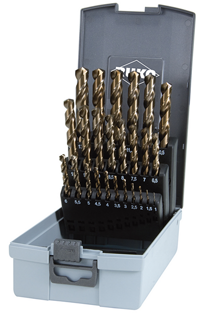 Zestaw wierteł kobaltowych 1,0-13,0x0,5mm HSSE-Co5 25szt. w kasecie z tworzywa sztucznego ABS, DIN 338 typ VA