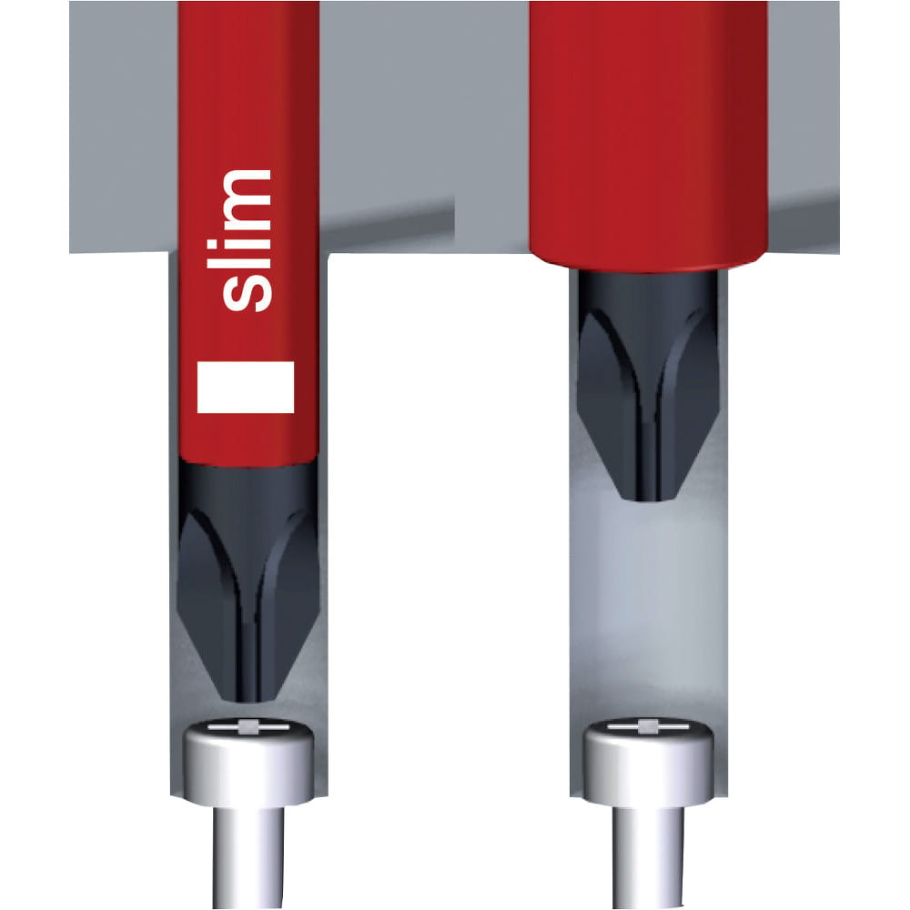 Trzonki Wiha slim gwarantują nieograniczony i w pełni izolowany dostęp do głęboko położonych śrub.