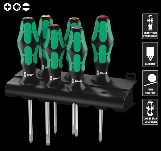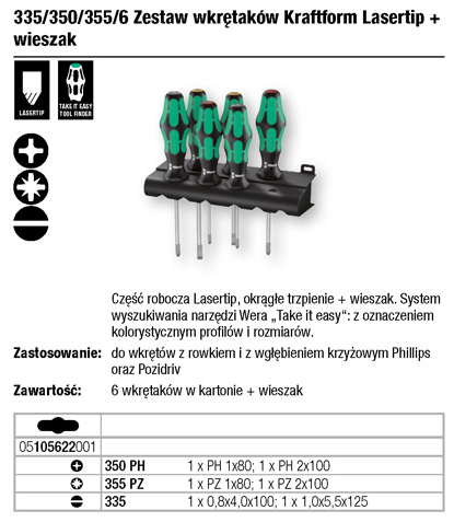Zestaw wkrętaków 335/350/355/6 Kraftform Lasertip + wieszak:
